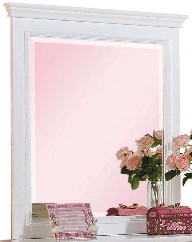 Create an illusion of light and space by bringing in this Lacey shaker-style dresser top mirror. It comes with a white rectangular wooden encasing and showcases molded details on the frame.Read More