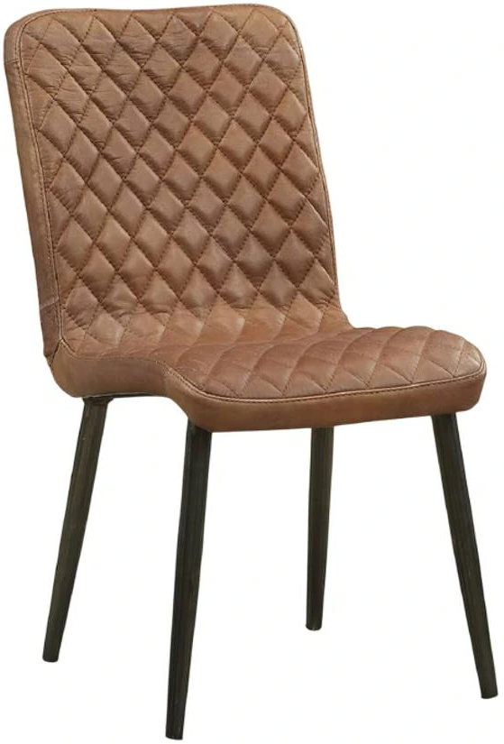 The Millerton side chair bring a clean and modern style to your dining room. This dining chair features a diamond patterned brown top grain leather padded seat with metal tapered legs in an antique black finish, creating a retro vibe. Add this chair to any table for extra comfort and style.Read More