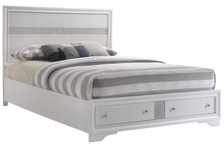 The Naima bedroom collection offers sophisticated look, clean lines and contemporary style. Features panel headboard, and storage footboard in bright white finish with contrasting light gray trim panel, which provides elegant style that will bring you a perfect sleek design for your home. Storage footboard only available for King and Queen bed size.Read More