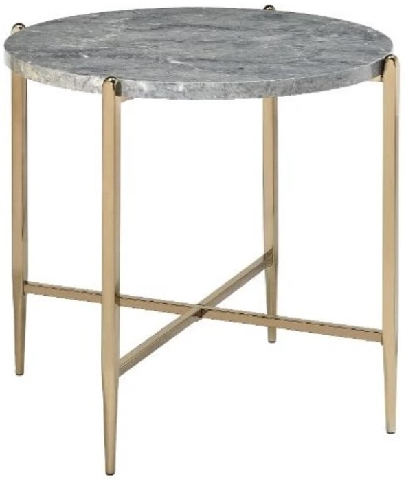 Sleek finish, sharp angles, and stylish designs were incorporated in this stunning modern piece. Shown in a champagne gold finish, the metal open base with X-shape support boasts a simple silhouette that exudes modern elegance. Round faux marble table top complements gold metal frame perfectly, creating a bold visual effect.Read More