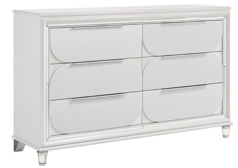 The Tarian bedroom collection will add stylish glamour with a refined touch of glitz to your bedroom! Sturdily crafted for long-term use, this bed is finished in a fresh and alluring peal white. The headboard features hidden LED lighting and comfortable boucle padding.Read More