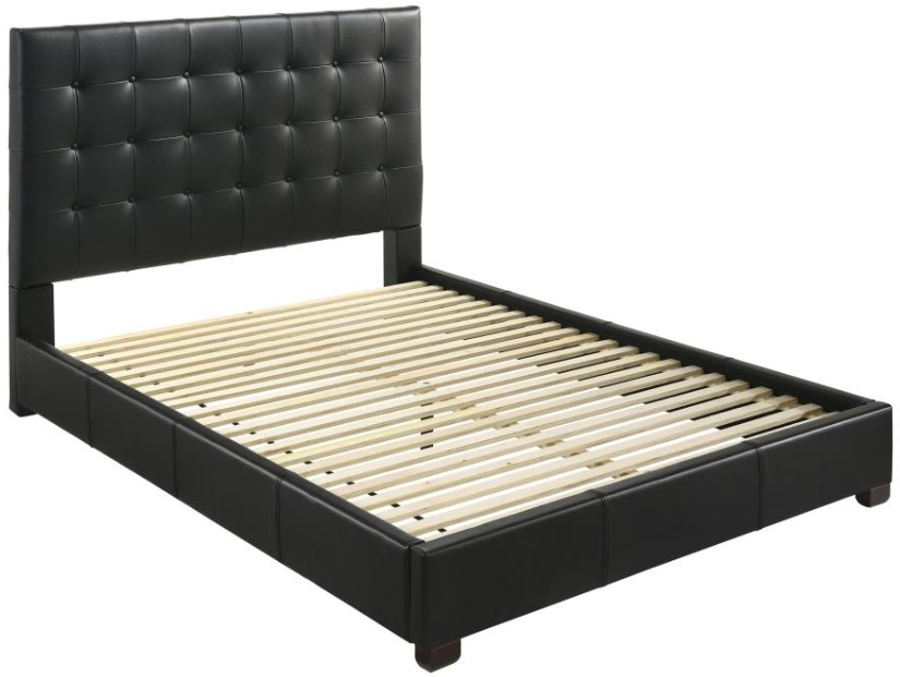 Queen platform bed with tufted headboard and sleek silhouette for refined structure