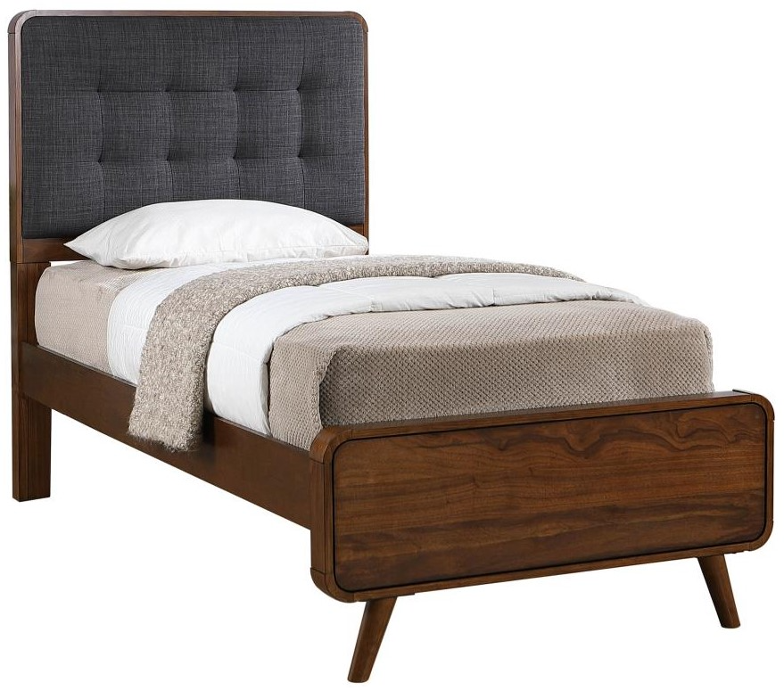 Mid-century modern twin bed in dark walnut finish with a sleek and elegant silhouette