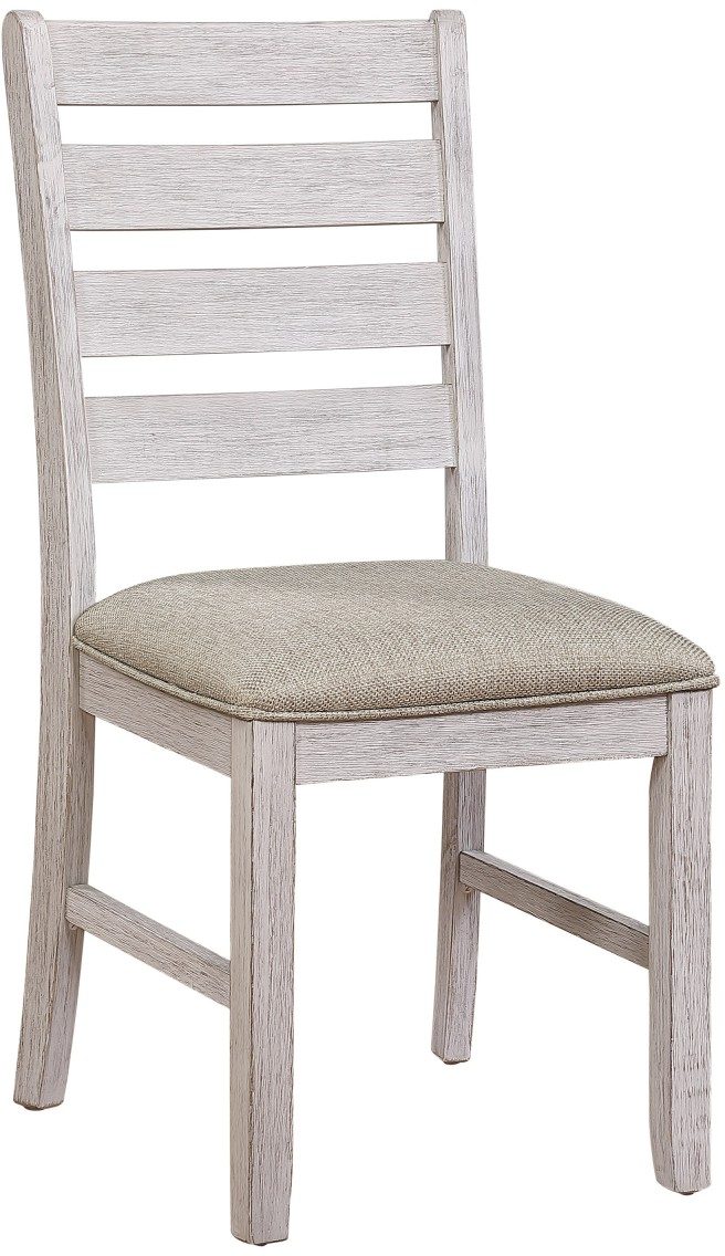 With a neutral palette and transitional design, the Ithaca collection will place perfectly in your casual dining room. The grayish-white finish of the Ithaca Collection’s wood-framed side chair serves as neutral complement its wheat colored linen fabric seat.Read More