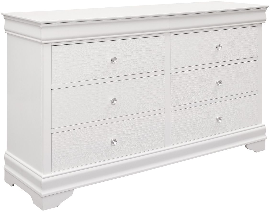 The unexpected intersection of traditional design and glamorous styling creates the dynamic look of the Lana collection. A white finish is utilized to enhance the faux alligator embossed drawer fronts of the dresser with crystal faceted knob hardware lending an additional fabulous touch.Read More