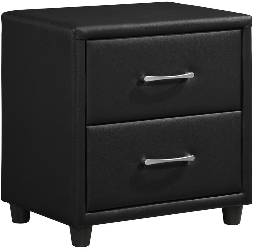 The contemporary design of the Lorenzi collection is enhanced by the addition of the durable black faux leather covering of the nightstand’s exterior. Silver tone hardware provides a distinct contrast to the finish of the nightstand’s surface. Scaled for urban living, this collection will provide a unique and stylish addition to your bedroom.Read More