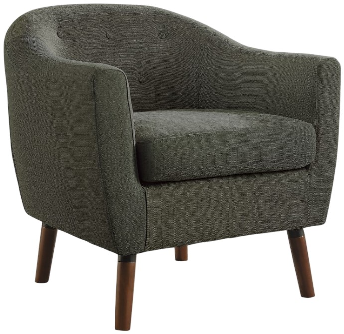 Retro lines need not stay in the past with the mid-century inspired lines of the Lucille Collection. The gray fabric chair features a contoured chair back with button-tufted accenting and stylishly appointed cherry finished wood legs, providing a look that shows your classic personal style.Read More