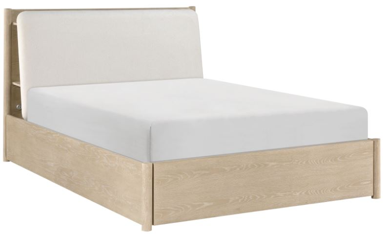 Soft modern lines comprise the design of the Matteo collection, while convenience features provide functional accent to your bedroom. The light oak finish over oak veneer is complemented by the oyster-hued textured fabric upholstery that covers the padded headboard lending a light and airy aesthetic to your bedroom.Read More