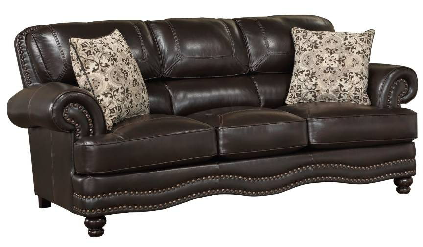 With accenting that pairs flared rolled arms, plush seating, nailhead trim and serpentine lines, the design of the Milford Collection results in an elegant seating option for your home’s traditional living room. Brown breathable faux leather upholstery covers the sofa while providing classic detail to the timeless aesthetic.Read More