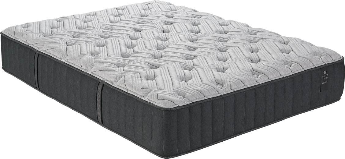 Scott Living™ Mirage Hybrid Medium-Plush Tight-Top Queen Mattress features a cooling cover, ½" gel foam, 1½" super-soft foam, plus AlumiLast® memory foam and medium-support foam over zoned Q5 individually wrapped coils with foam-encasement—delivering balanced plush comfort and supportRead More